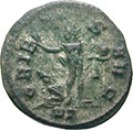 ID C46: Aurelianus AD 270-275 Antoninianus (BI; 18-21mm; 2.57g; 2h) Rome, 1st issue, 3rd officina, Oct – Dec 270. IMP C L DO[M A]VRE]LIANVS AVG Radiate, cuirassed and draped bust of Aurelianus to right. Rev. VIC[TOR]IA AVG Victoria running to right, holding wreath in right hand and palm branch over left shoulder; in the field to right, Γ. Details |