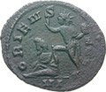 ID C46: Aurelianus AD 270-275 Antoninianus (BI; 18-21mm; 2.57g; 2h) Rome, 1st issue, 3rd officina, Oct – Dec 270. IMP C L DO[M A]VRE]LIANVS AVG Radiate, cuirassed and draped bust of Aurelianus to right. Rev. VIC[TOR]IA AVG Victoria running to right, holding wreath in right hand and palm branch over left shoulder; in the field to right, Γ. Details |