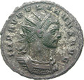 ID C46: Aurelianus AD 270-275 Antoninianus (BI; 18-21mm; 2.57g; 2h) Rome, 1st issue, 3rd officina, Oct – Dec 270. IMP C L DO[M A]VRE]LIANVS AVG Radiate, cuirassed and draped bust of Aurelianus to right. Rev. VIC[TOR]IA AVG Victoria running to right, holding wreath in right hand and palm branch over left shoulder; in the field to right, Γ. Details |