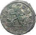ID C46: Aurelianus AD 270-275 Antoninianus (BI; 18-21mm; 2.57g; 2h) Rome, 1st issue, 3rd officina, Oct – Dec 270. IMP C L DO[M A]VRE]LIANVS AVG Radiate, cuirassed and draped bust of Aurelianus to right. Rev. VIC[TOR]IA AVG Victoria running to right, holding wreath in right hand and palm branch over left shoulder; in the field to right, Γ. Details |
