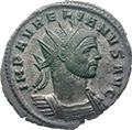 ID C46: Aurelianus AD 270-275 Antoninianus (BI; 18-21mm; 2.57g; 2h) Rome, 1st issue, 3rd officina, Oct – Dec 270. IMP C L DO[M A]VRE]LIANVS AVG Radiate, cuirassed and draped bust of Aurelianus to right. Rev. VIC[TOR]IA AVG Victoria running to right, holding wreath in right hand and palm branch over left shoulder; in the field to right, Γ. Details |
