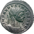 ID C46: Aurelianus AD 270-275 Antoninianus (BI; 18-21mm; 2.57g; 2h) Rome, 1st issue, 3rd officina, Oct – Dec 270. IMP C L DO[M A]VRE]LIANVS AVG Radiate, cuirassed and draped bust of Aurelianus to right. Rev. VIC[TOR]IA AVG Victoria running to right, holding wreath in right hand and palm branch over left shoulder; in the field to right, Γ. Details |