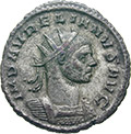 ID C46: Aurelianus AD 270-275 Antoninianus (BI; 18-21mm; 2.57g; 2h) Rome, 1st issue, 3rd officina, Oct – Dec 270. IMP C L DO[M A]VRE]LIANVS AVG Radiate, cuirassed and draped bust of Aurelianus to right. Rev. VIC[TOR]IA AVG Victoria running to right, holding wreath in right hand and palm branch over left shoulder; in the field to right, Γ. Details |