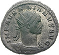 ID C46: Aurelianus AD 270-275 Antoninianus (BI; 18-21mm; 2.57g; 2h) Rome, 1st issue, 3rd officina, Oct – Dec 270. IMP C L DO[M A]VRE]LIANVS AVG Radiate, cuirassed and draped bust of Aurelianus to right. Rev. VIC[TOR]IA AVG Victoria running to right, holding wreath in right hand and palm branch over left shoulder; in the field to right, Γ. Details |