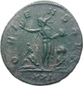 ID C46: Aurelianus AD 270-275 Antoninianus (BI; 18-21mm; 2.57g; 2h) Rome, 1st issue, 3rd officina, Oct – Dec 270. IMP C L DO[M A]VRE]LIANVS AVG Radiate, cuirassed and draped bust of Aurelianus to right. Rev. VIC[TOR]IA AVG Victoria running to right, holding wreath in right hand and palm branch over left shoulder; in the field to right, Γ. Details |