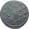 ID C46: Aurelianus AD 270-275 Antoninianus (BI; 18-21mm; 2.57g; 2h) Rome, 1st issue, 3rd officina, Oct – Dec 270. IMP C L DO[M A]VRE]LIANVS AVG Radiate, cuirassed and draped bust of Aurelianus to right. Rev. VIC[TOR]IA AVG Victoria running to right, holding wreath in right hand and palm branch over left shoulder; in the field to right, Γ. Details |