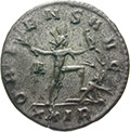 ID C46: Aurelianus AD 270-275 Antoninianus (BI; 18-21mm; 2.57g; 2h) Rome, 1st issue, 3rd officina, Oct – Dec 270. IMP C L DO[M A]VRE]LIANVS AVG Radiate, cuirassed and draped bust of Aurelianus to right. Rev. VIC[TOR]IA AVG Victoria running to right, holding wreath in right hand and palm branch over left shoulder; in the field to right, Γ. Details |