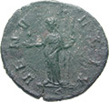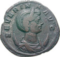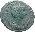 ID C75: Severina Augusta AD 270-275 Antoninianus (BI; 21-22mm; 3.06g; 12h) Rome, 11th issue, 1st officina, early – Sept 275. SEVERINA AVG Diademed and draped bust of Severina to right, on a lunar crescent. Rev. CONCORDIAE MILITVM Concordia standing to left, holding standard in each hand; in the field to right, A; in exergue, XXIR. Details |