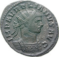 ID C46: Aurelianus AD 270-275 Antoninianus (BI; 18-21mm; 2.57g; 2h) Rome, 1st issue, 3rd officina, Oct – Dec 270. IMP C L DO[M A]VRE]LIANVS AVG Radiate, cuirassed and draped bust of Aurelianus to right. Rev. VIC[TOR]IA AVG Victoria running to right, holding wreath in right hand and palm branch over left shoulder; in the field to right, Γ. Details |