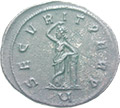 ID D03: Tacitus AD 275-276 Antoninianus (BI; 22-24mm; 2.94g; 6h) Lugdunum (Lyon), 3rd issue, 3rd officina, Jan 276. IMP CL TACITVS AVG Radiate, cuirassed and draped bust to right. Rev. SPES PVBLICA Spes walking to left, holding flower in right hand and raising skirt with left hand; in exergue, CA. Details |