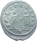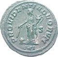 ID D02: Tacitus AD 275-276 Antoninianus (BI; 22-24mm; 4.10g; 6h) Lugdunum (Lyon), 1st issue, Nov – Dec 275. IMP C CL TACITVS AVG Radiate, cuirassed and draped bust of Tacitus to right. Rev. AEQV[I]TAS AVG Providentia standing to left, holding baton in right hand and cornucopiae in left hand; at feet to left, globe. Extremely rare. Details |