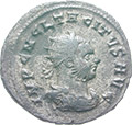 ID D28: Tacitus AD 275-276 Antoninianus (BI; 20-23mm; 4.03g; 12h) Siscia, 5th issue, 6th officina, early – Jun 276. IMP C M CL TACITVS AVG Radiate and cuirassed bust of Tacitus to right. Rev. PAX - AVGVSTI Pax running to left, holding olive branch in right hand and long transverse sceptre in left hand; in exergue, VI. Very rare. Details |