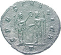 ID D43: Tacitus AD 275-276 Antoninianus (BI; 22-23mm; 3.25g; 5h) Antioch, 3rd issue, 6th officina, Jan – Jun 276. IMP C M CL TACITVS AVG Radiate, cuirassed and draped bust of Tacitus to right. Rev. CLEMENTIA - TEMP Emperor in military dress standing to right, holding short eagle-tipped sceptre in left hand, receiving globe from Jupiter standing left, holding long sceptre in left hand; in the field S; in exergue, XXI. Details |