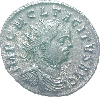 Tacitus AD 275-276 Antoninianus (BI; 21-22mm; 3.90g; 12h) Ticinum, 1st issue, 5th officina, Nov - dec 275. IMP C M CL TACITVS AVG Radiate, cuirassed and draped bust of Tacitus to right. Rev. FELI-CIT - TEMP Felicitas standing to left, holding short-handled caduceus in right hand and long sceptre in left hand; in exergue, V.