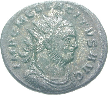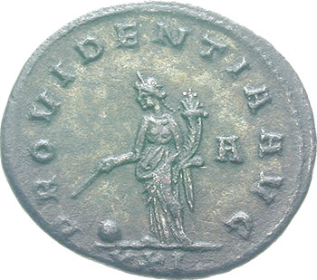 Tacitus AD 275-276 Antoninianus (BI; 20-22mm; 3.78g; 6h) Rome, 2nd issue, 1st officina, Nov - Dec 275. IMP C M CL TACITVS AVG Radiate, cuirassed and draped bust of Tacitus to right. Rev. PROVIDENTIA AVG Providentia standing to left, holding baton in right hand and cornucopiae in left hand; at feet to left, globe; in the field to right, A; in exergue, XXI. Rare.