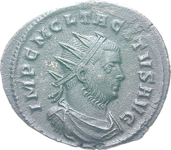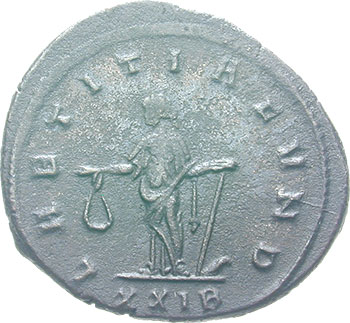 Tacitus AD 275-276 Antoninianus (BI; 21-23mm; 4.21g; 11h) Rome, 3rd issue, 2nd officina, early 276 - June 276. IMP C M CL TACITVS AVG Radiate, cuirassed and draped bust of Tacitus to right. Rev. LAETITIA FVND Laetitia standing to left, holding wreath in right hand and anchor in left hand; in exergue, XXIB.