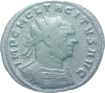 Tacitus AD 275-276 Antoninianus (BI; 20-23mm; 4.03g; 12h) Siscia, 5th issue, 6th officina, early – Jun 276. IMP C M CL TACITVS AVG Radiate and cuirassed bust of Tacitus to right. Rev. PAX - AVGVSTI Pax running to left, holding olive branch in right hand and long transverse sceptre in left hand; in exergue, VI. Very rare.