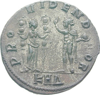 Tacitus AD 275-276 Antoninianus (BI; 21-22mm; 3.58g; 6h) Serdica, 3rd issue, 4th officina, early – June 276. IMP C M CL TACITVS P AVG Radiate and cuirassed bust of Tacitus to right. Rev. PRO-VIDEN D-[E]OR Fides standing to right, holding standard in each hand, facing Sol standing left, right hand raised and holding globe in left hand; in exergue, KAΔ. Extremely rare.