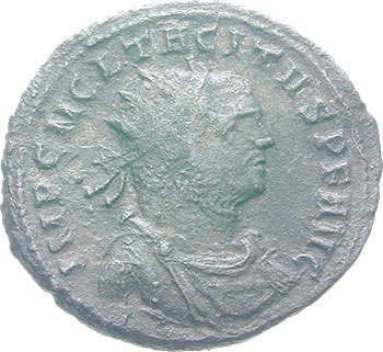 Tacitus AD 275-276 Antoninianus (BI; 23-24mm; 4.66g; 4h) Serdica, 3rd issue, 4th officina, early- Jun 276. IMP C M CL TACITVS AVG Radiate, cuirassed and draped bust of Tacitus to right. Rev. PRO-V-IDEN D-EOR Fides standing to right, holding standard in each hand, facing Sol standing to left, right hand raised and holding globe in left hand; in exergue, KAΔ. Extremely fine.