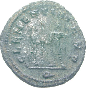 Tacitus AD 275-276 Antoninianus (BI; 21-23mm; 3.37g; 6h) Cyzicus, 3rd issue, 4th officina, Jan – Jun 276. IMP C M CL TACITVS AVG Radiate, cuirassed and draped bust to right. Rev. CLEMENTIA TEMP Mars in military dress to right, holding spear in left hand, giving globe to Emperor standing left, holding long sceptre in left hand; in exergue, Q. Rare.