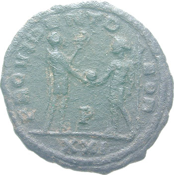Tacitus AD 275-276 Antoninianus (BI; 21-22mm; 4.38g; 12h) Antioch, 1st issue, 1st officina, Nov - Dec 275. IMP C TACITVS AVG Radiate, cuirassed and draped bust of Tacitus to right. Rev. PROVIDENT D-EOR Emperor in military dress standing to right, holding short eagle-tipped sceptre in left hand, receiving globe from Jupiter standing left, holding long sceptre in left hand; in the field, P; in exergue, XXI. Very rare.