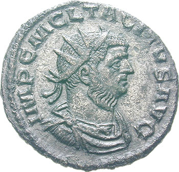 Tacitus AD 275-276 Double Antoninianus (BI; 21-22mm; 5.06g; 12h) Antioch, 3rd issue, 3rd officina, Jan – Jun 276. IMP C M CL TACITVS AVG Radiate, cuirassed and draped bust of Tacitus to right. Rev. CLEMENTIA T-EMP Emperor in military dress standing to right, holding short eagle-tipped sceptre in left hand, receiving a globe from Jupiter standing to left, holding long sceptre in left hand; in the field, Γ; in exergue, XI. Very rare.