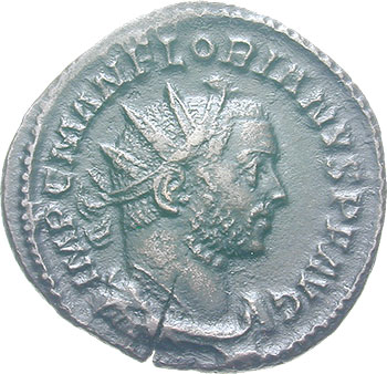 Florianus AD 276 Antoninianus (BI; 22-23mm; 3.11g; 7h) Lugdunum (Lyon), 2nd issue, 3rd officina, July 276. IMP C M AN FLORIANVS P F AVG Radiate, cuirassed and draped bust of Florianus to right. Rev. PACATOR ORBIS Sol running to left, with right hand raised and holding whip in left hand, cloak flying behind; in exergue, III.