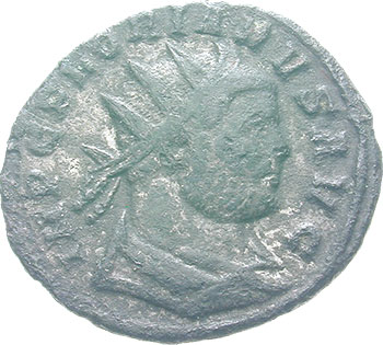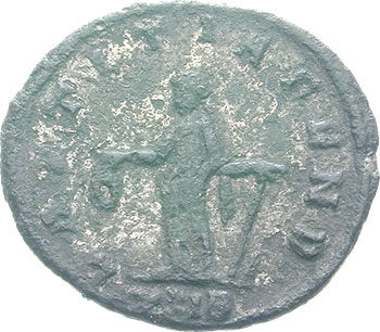 Florianus AD 276 Antoninianus (BI; 19-22mm; 3.40g; 7h) Rome, 1st issue, 2nd officina, Jul – Aug 276. IMP C FLORIANVS AVG Radiate, cuirassed and draped bust of Florianus to right, seen from the rear. Rev. LAETITIA FVND Laetitia standing to left, holding wreath in right hand and anchor in left hand; in exergue, XXIB.
