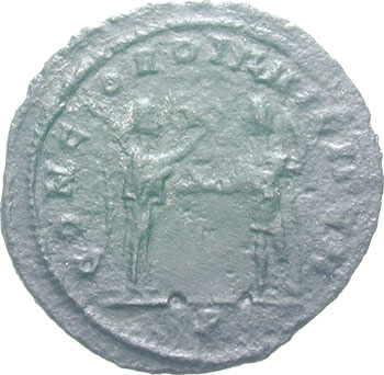 Florianus AD 276 Antoninianus (BI; 22-24mm; 3.01g; 11h) Cyzicus, 1st issue, 1st officina, Jul - Aug 276. IMP FLORIANVS AVG Radiate, cuirassed and draped of Florianus to right. Rev. CONC-ORDIA MILITVM Victory standing to right, holding wreath in right hand and palm against left shoulder, facing Emperor in military dress standing to left, right hand outstretched and holding long sceptre in left hand; in exertgue, P.